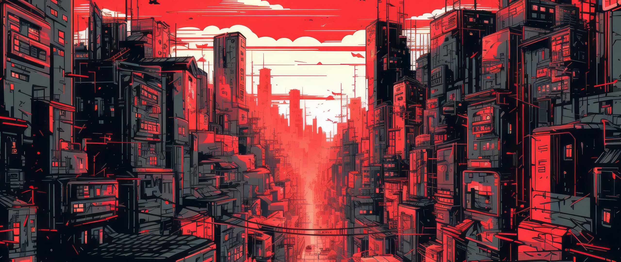 Обои: городской пейзаж, красный, город - 2560x1080