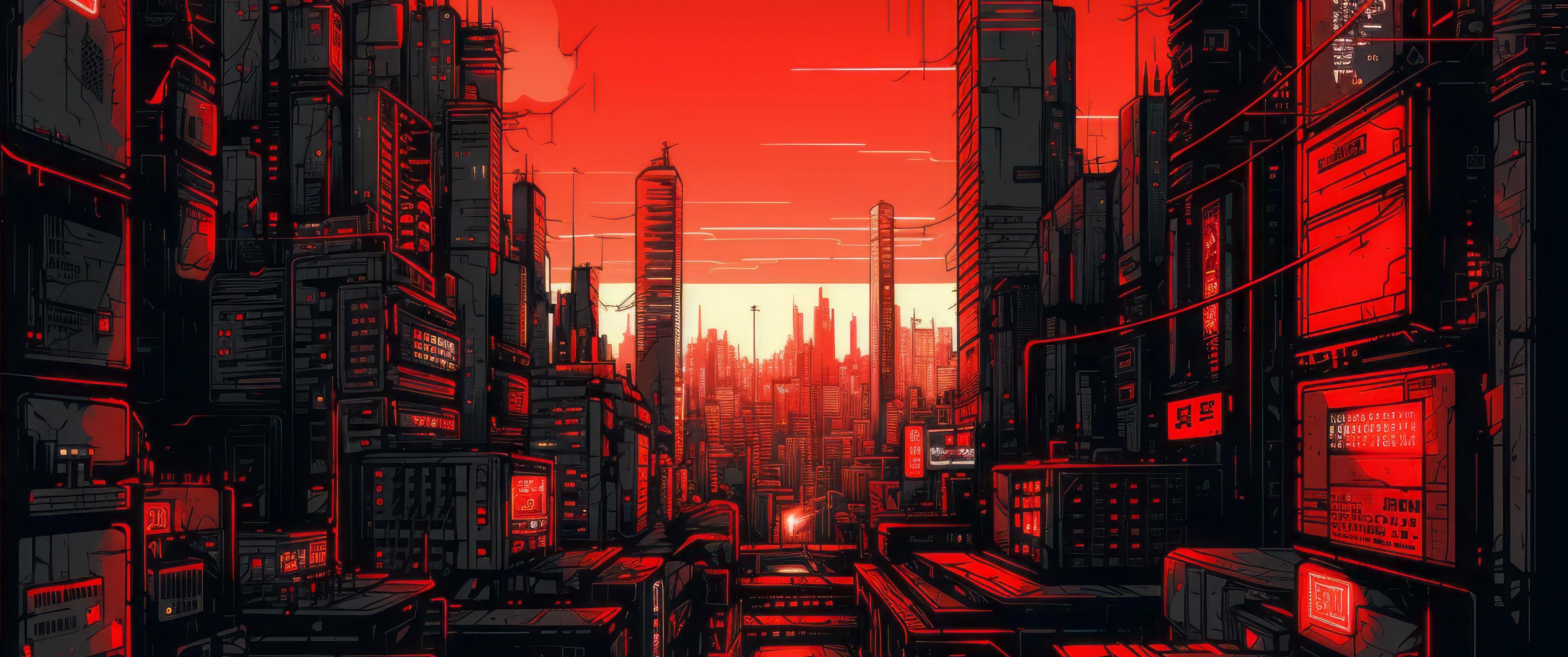 Обои: годской пейзаж, красный - 3440x1440
