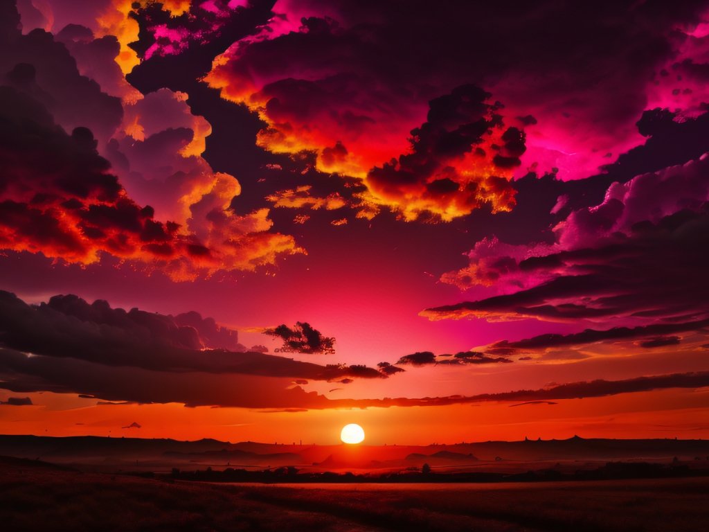 Обои: закат, пейзаж, красное небо - 1024x768