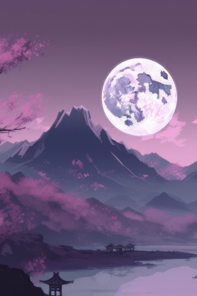 луна, желтый, Япония, пейзаж