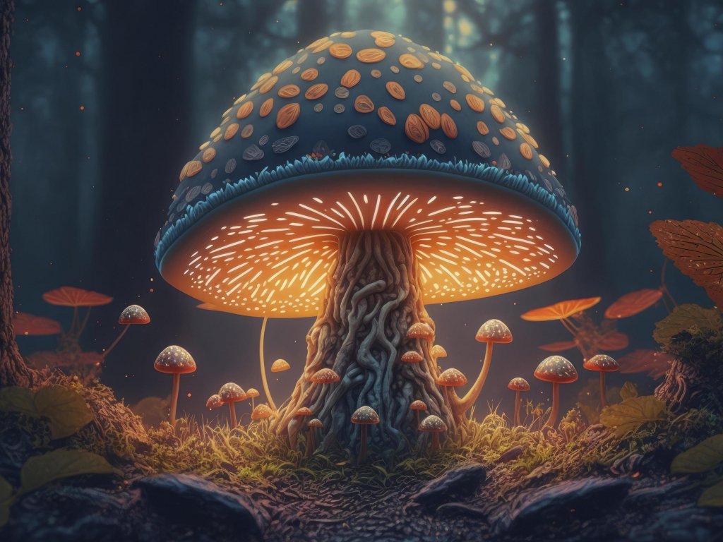 Обои: грибной лес, гриб, свечение - 1024x768