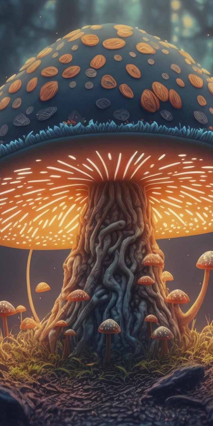 Обои: грибной лес, гриб, свечение - 720x1440