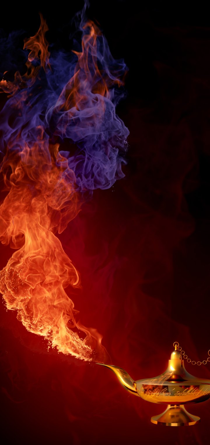 Обои: лампа Аладдина, огонь, пламя - 720x1520
