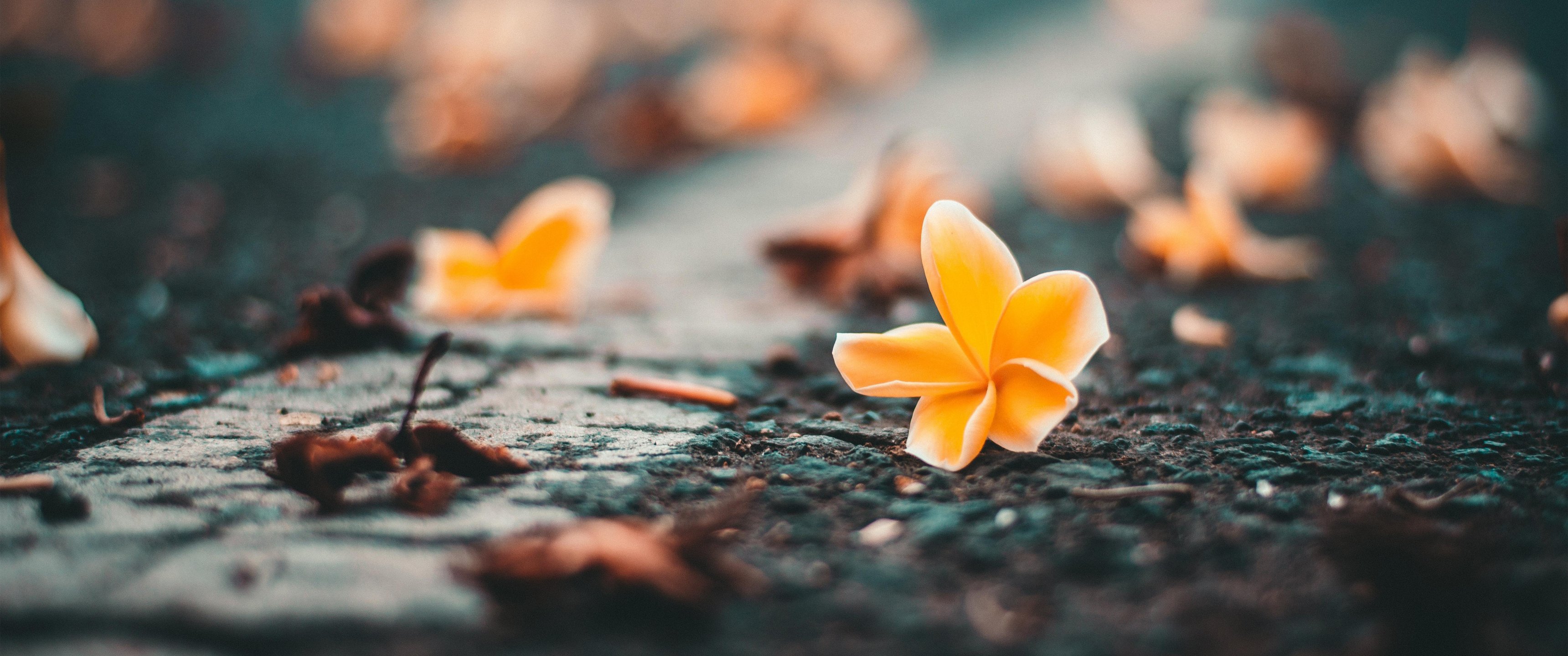 Обои: цветок крупным планом, желтый цветок - 3440x1440