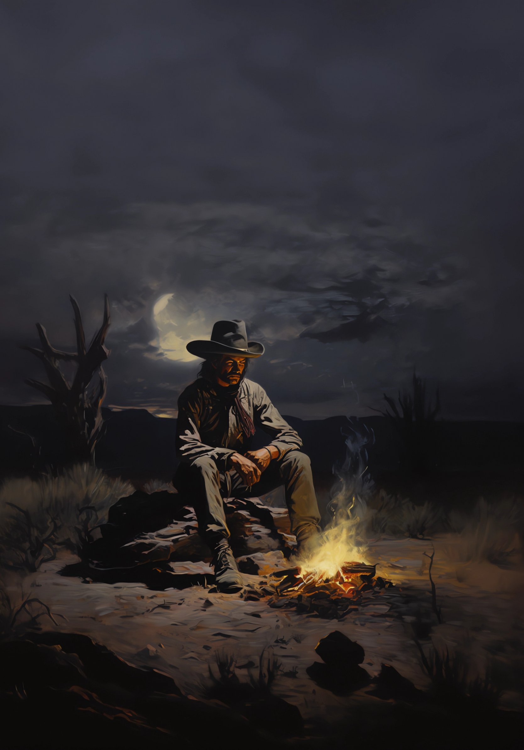 Обои: Дикий Запад, ковбой, ночь, костер - 1668x2388