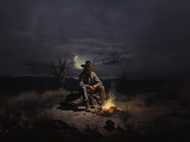 Обои: Дикий Запад, ковбой, ночь, костер - 800x600