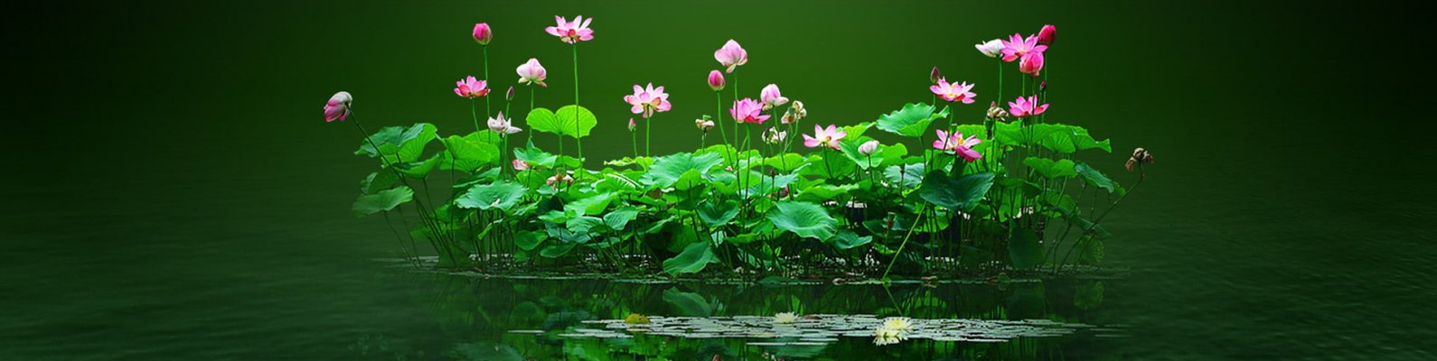 Обои: лотос, зеленый, пруд - 1590x400