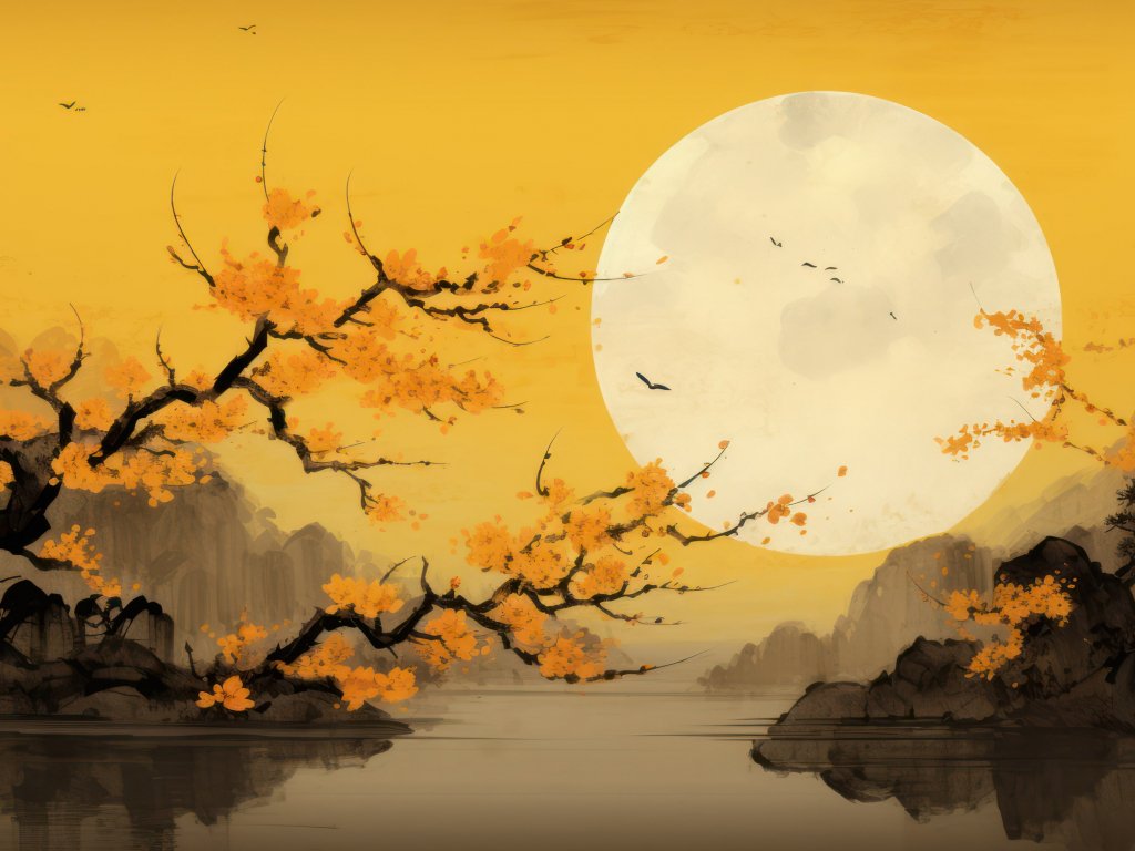 Обои: луна, желтый, Япония, пейзаж - 1024x768