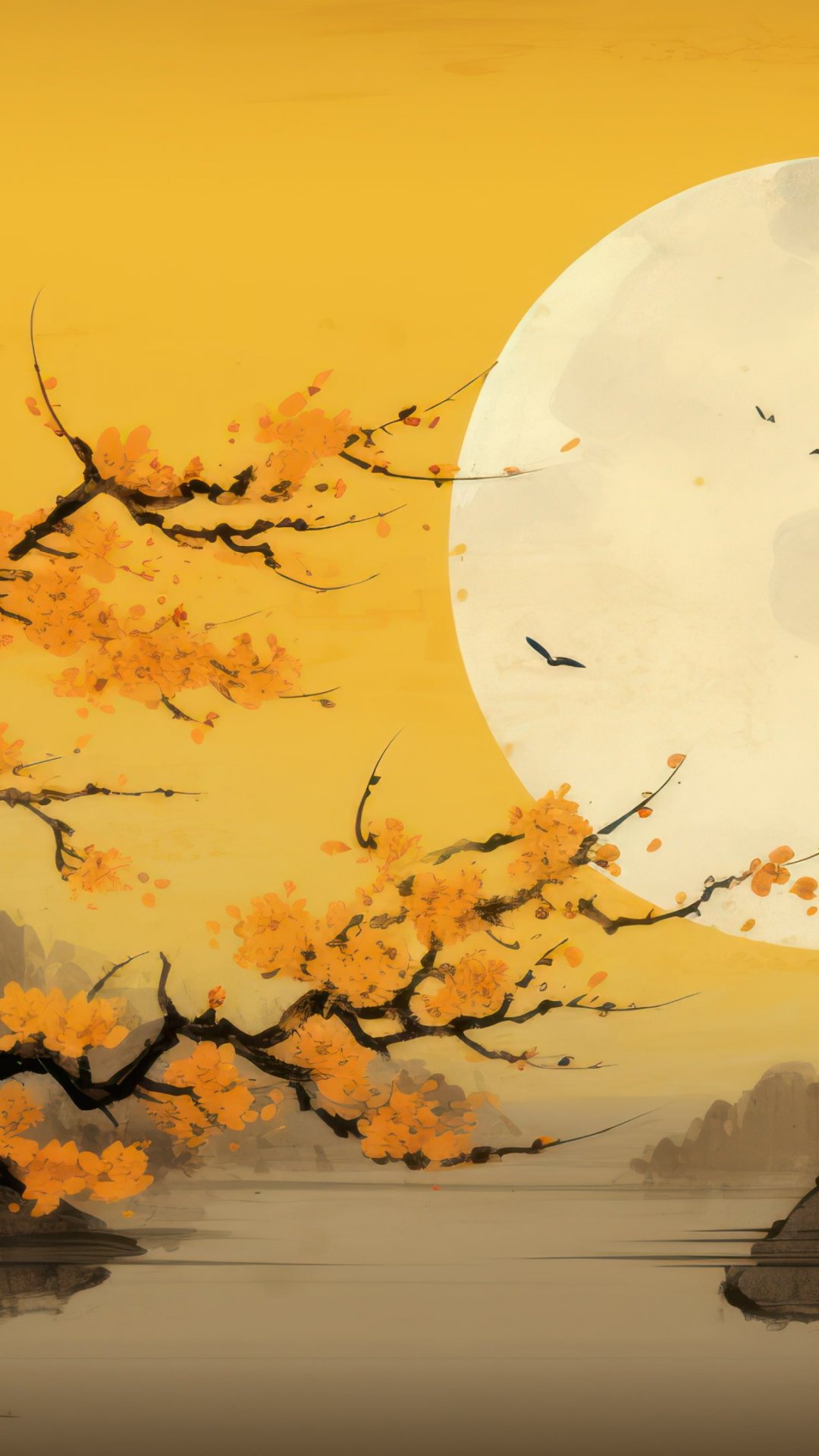Обои: луна, желтый, Япония, пейзаж - 1080x1920