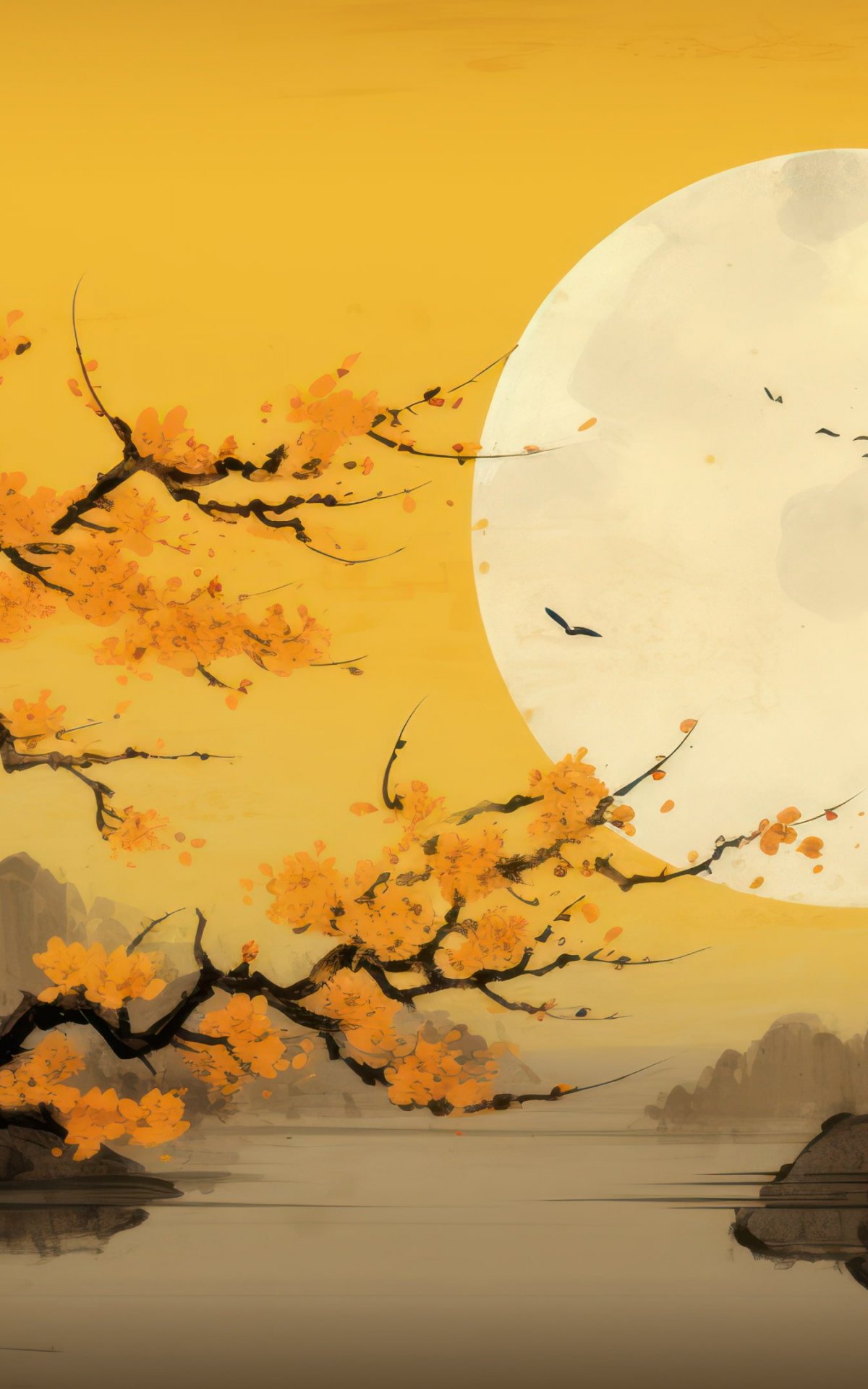 Обои: луна, желтый, Япония, пейзаж - 1200x1920