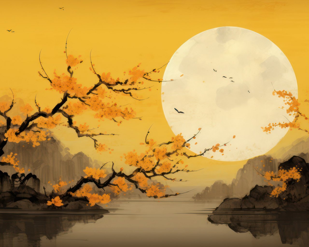 Обои: луна, желтый, Япония, пейзаж - 1280x1024