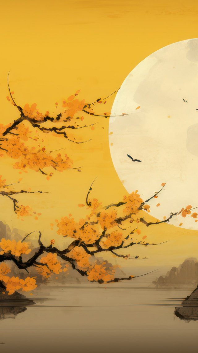 Обои: луна, желтый, Япония, пейзаж - 640x1136