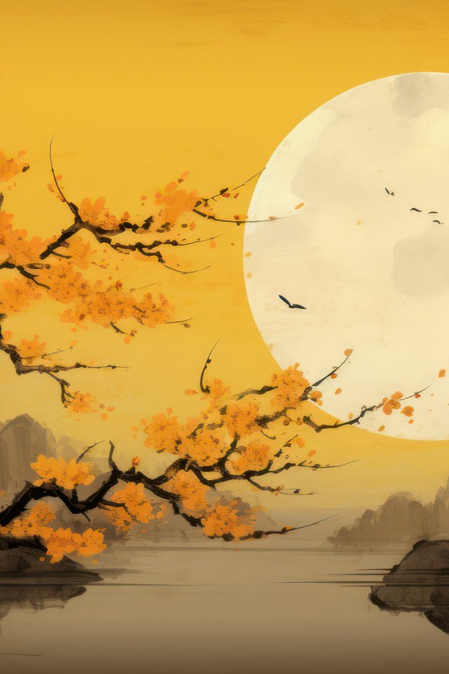 Обои: луна, желтый, Япония, пейзаж - 640x960