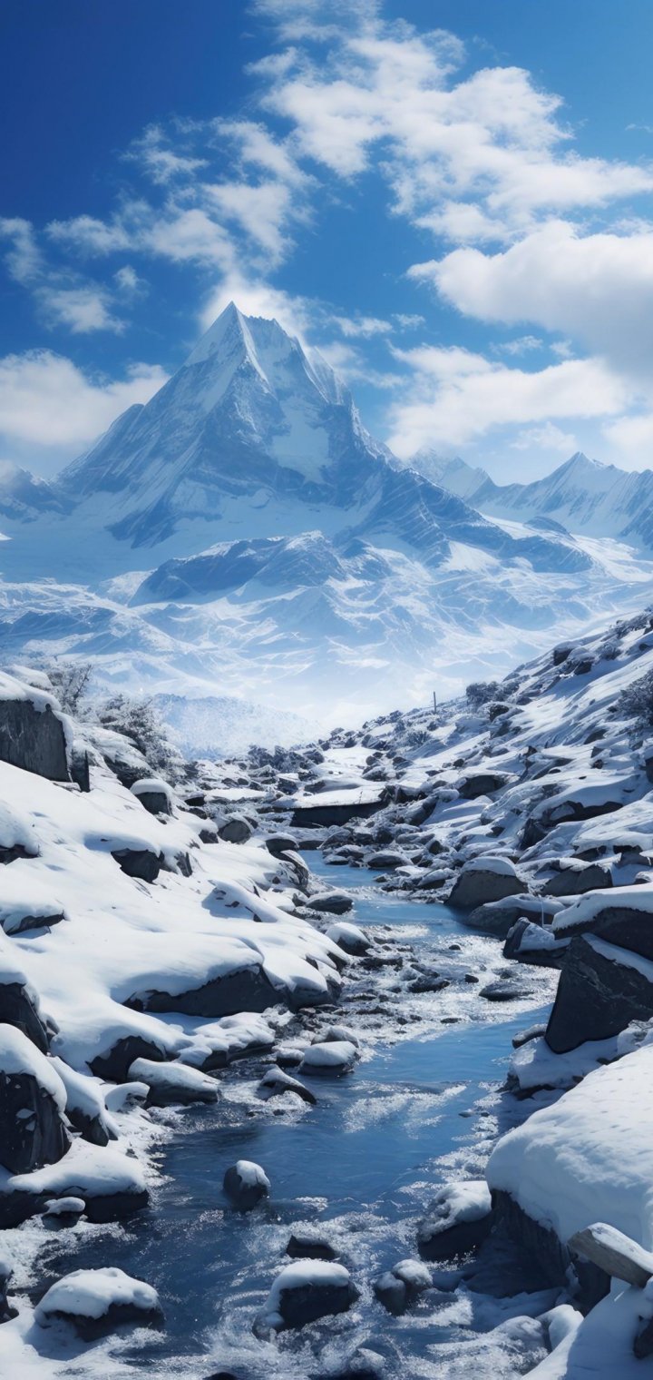 Обои: горы, снег, зима - 720x1520