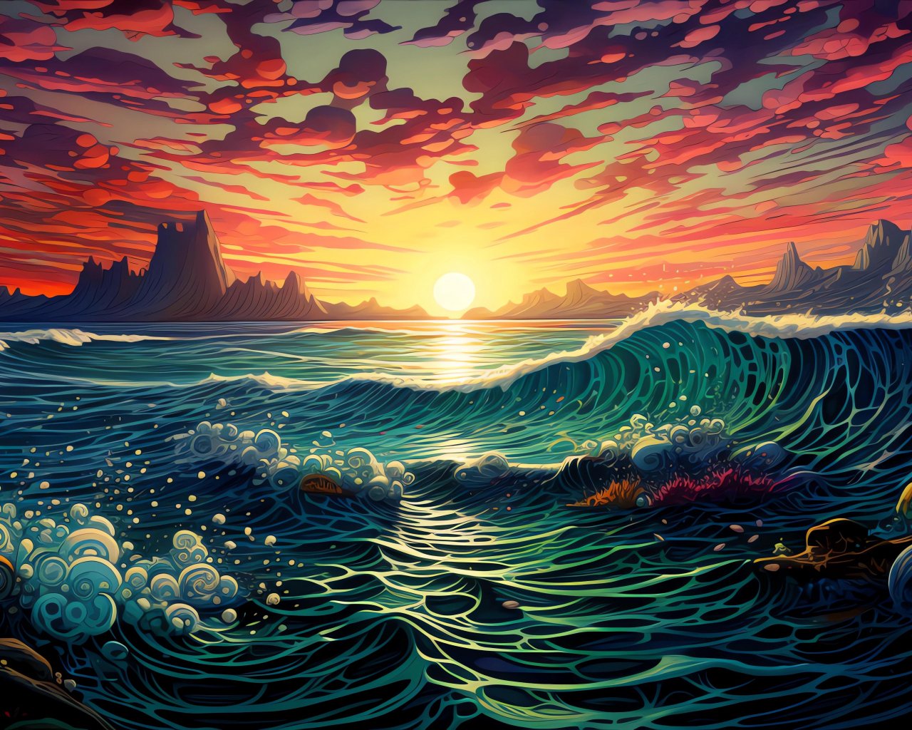 Обои: закат на море, море, морской пейзаж - 1280x1024