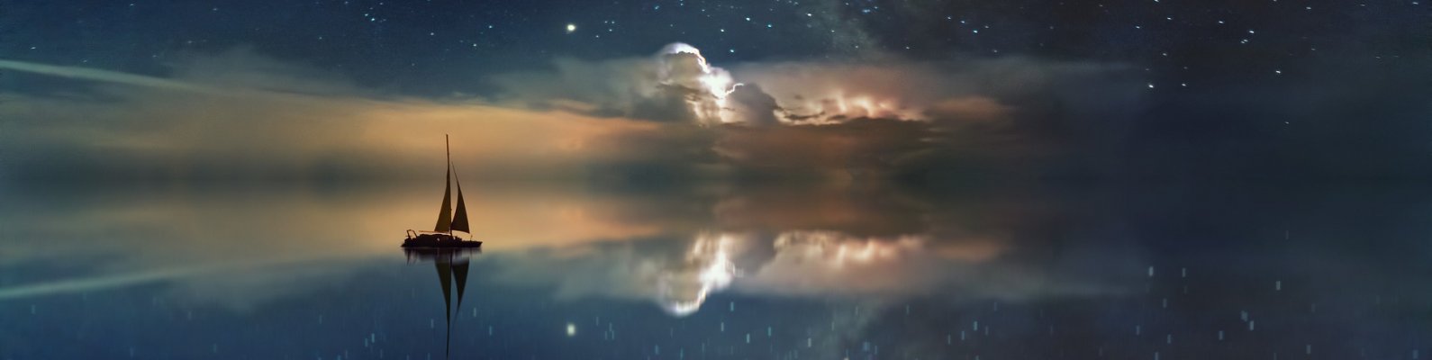 Обои: океан, звездное небо, синий - 1590x400