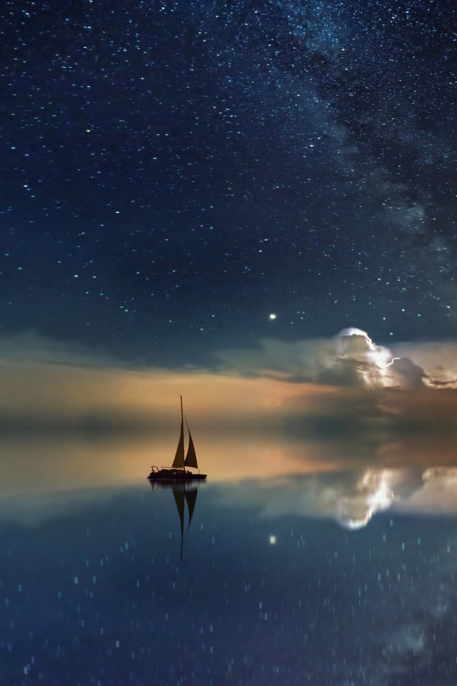 Обои: океан, звездное небо, синий - 640x960
