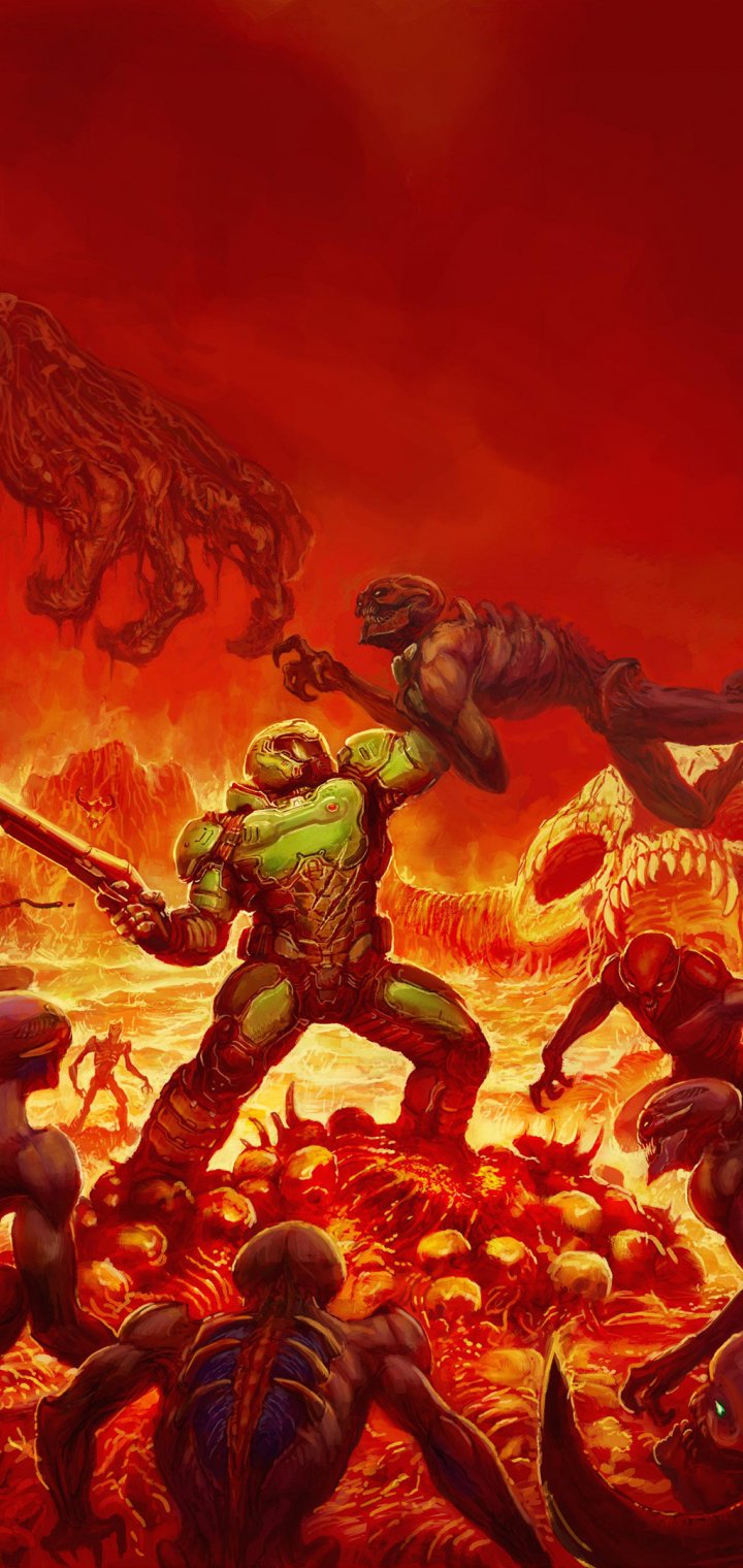 Обои: DOOM, фантастика, оранжевый - 720x1520