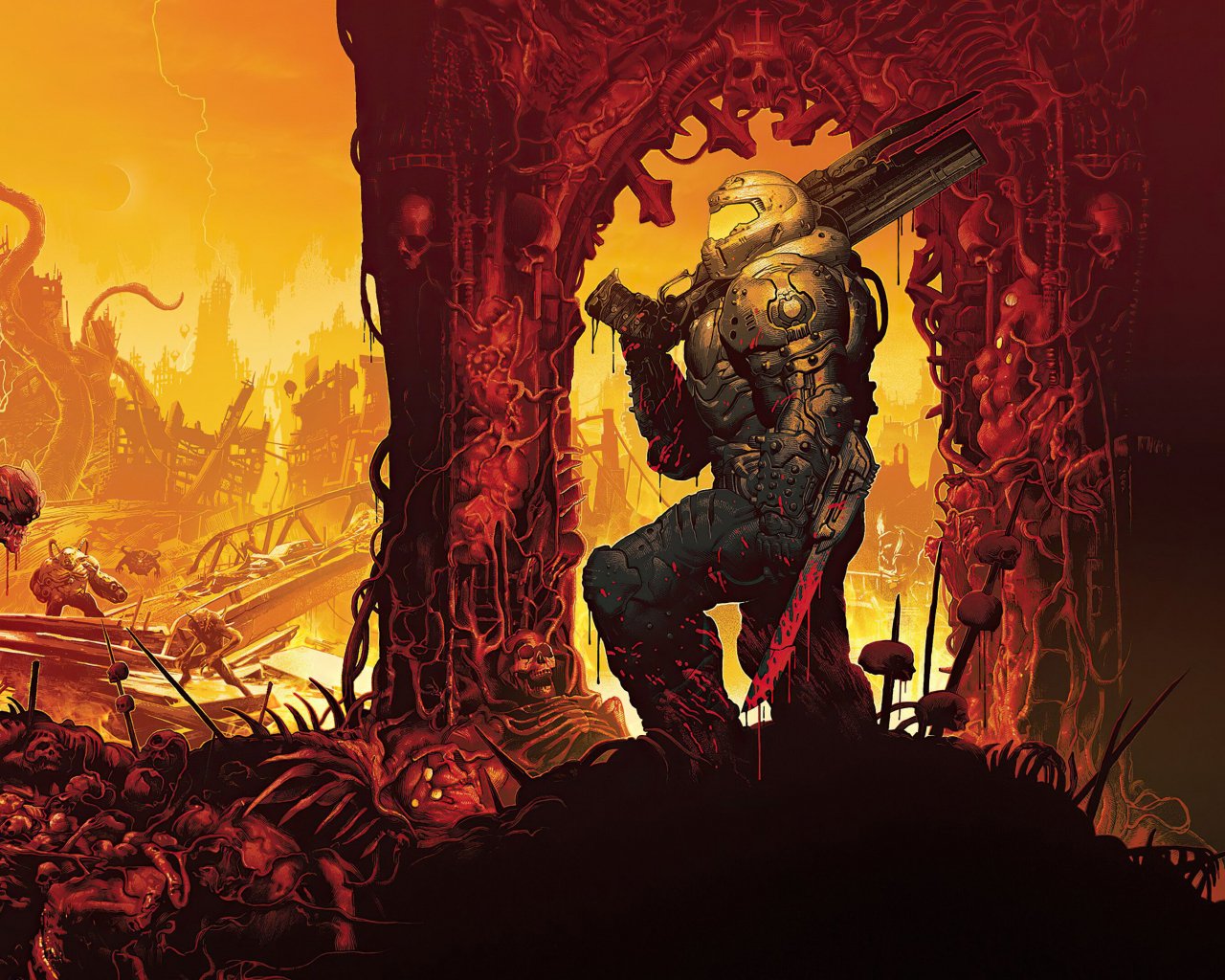 Обои: DOOM, Палач Рока, оранжевый - 1280x1024