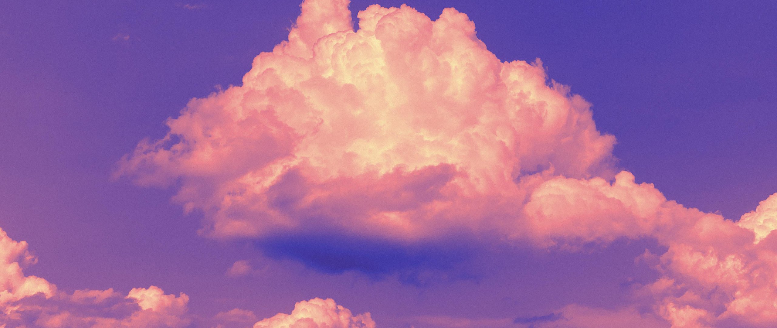 Обои: фиолетовое небо, кучевые облака, фиолетовый - 2560x1080