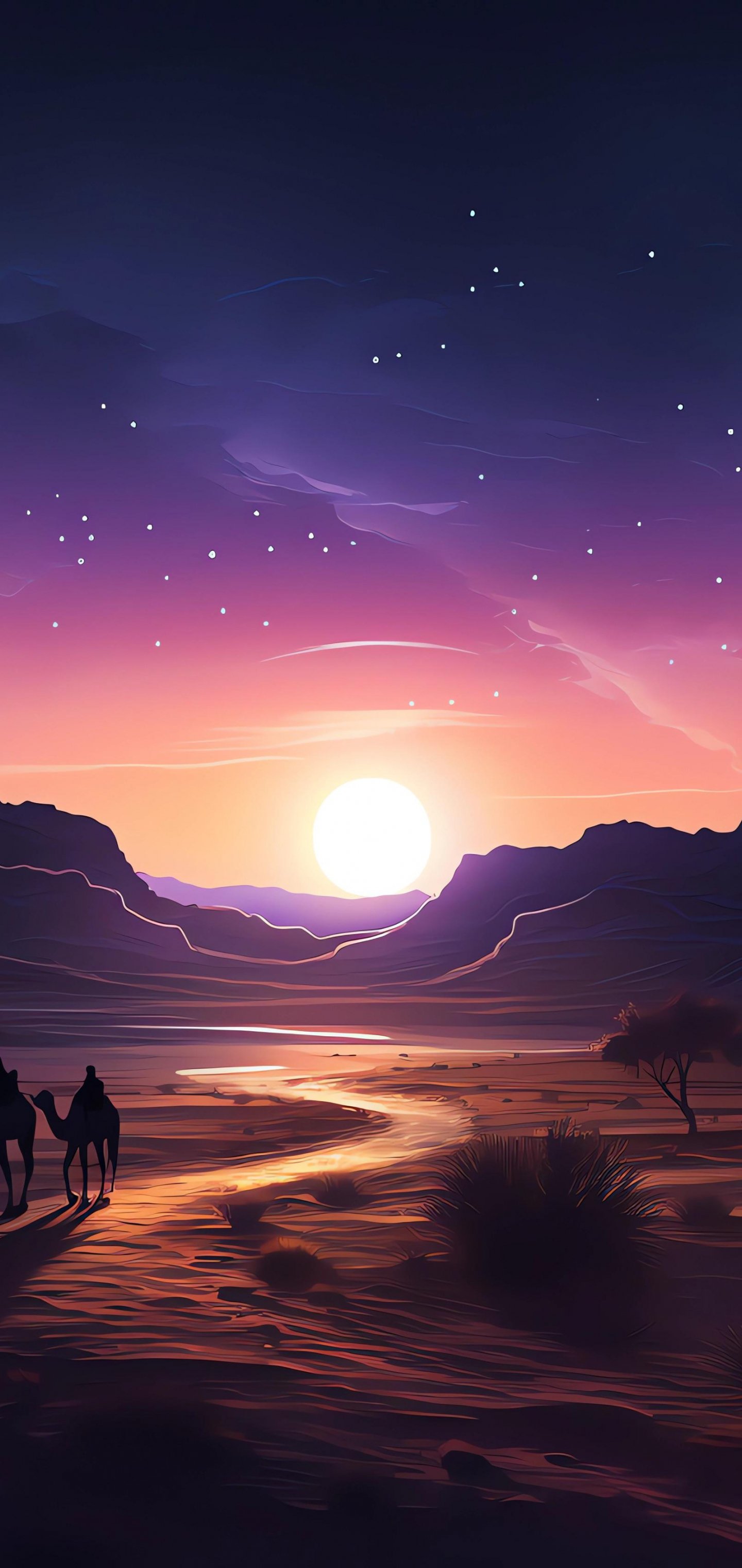 Обои: ночная пустыня, закат, темный - 1440x3040