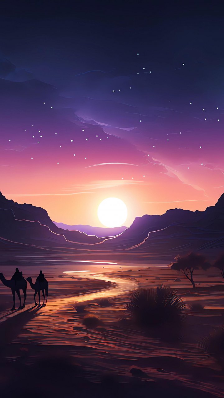 Обои: ночная пустыня, закат, темный - 720x1280