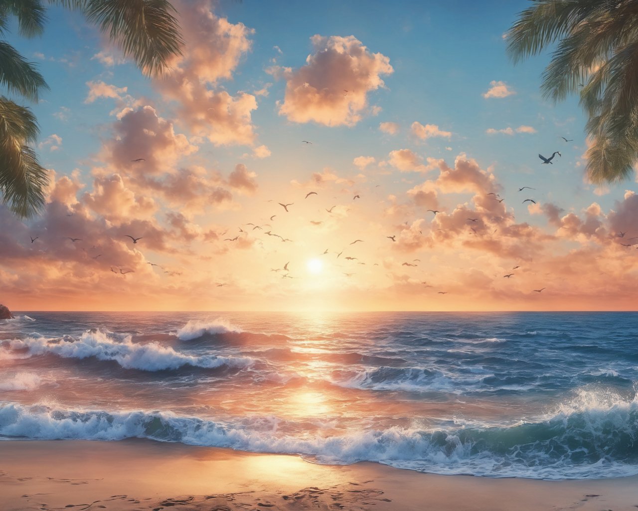 Обои: рассвет, пляж, море - 1280x1024