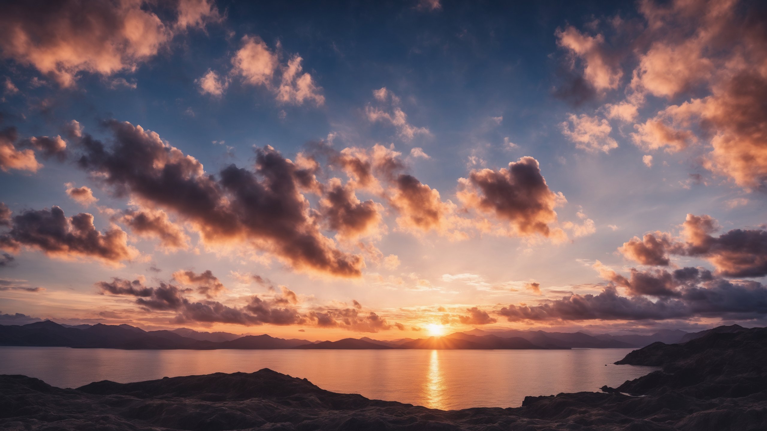 Обои: рассвет, озеро, пейзаж, облака - 2560x1440