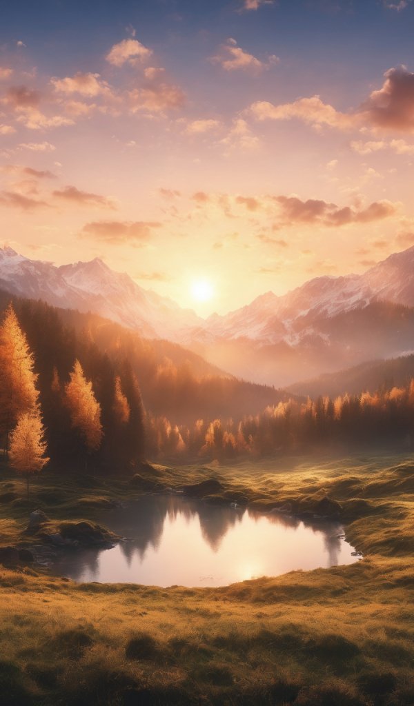 Обои: рассвет, пейзаж, горы, лес, озеро - 600x1024