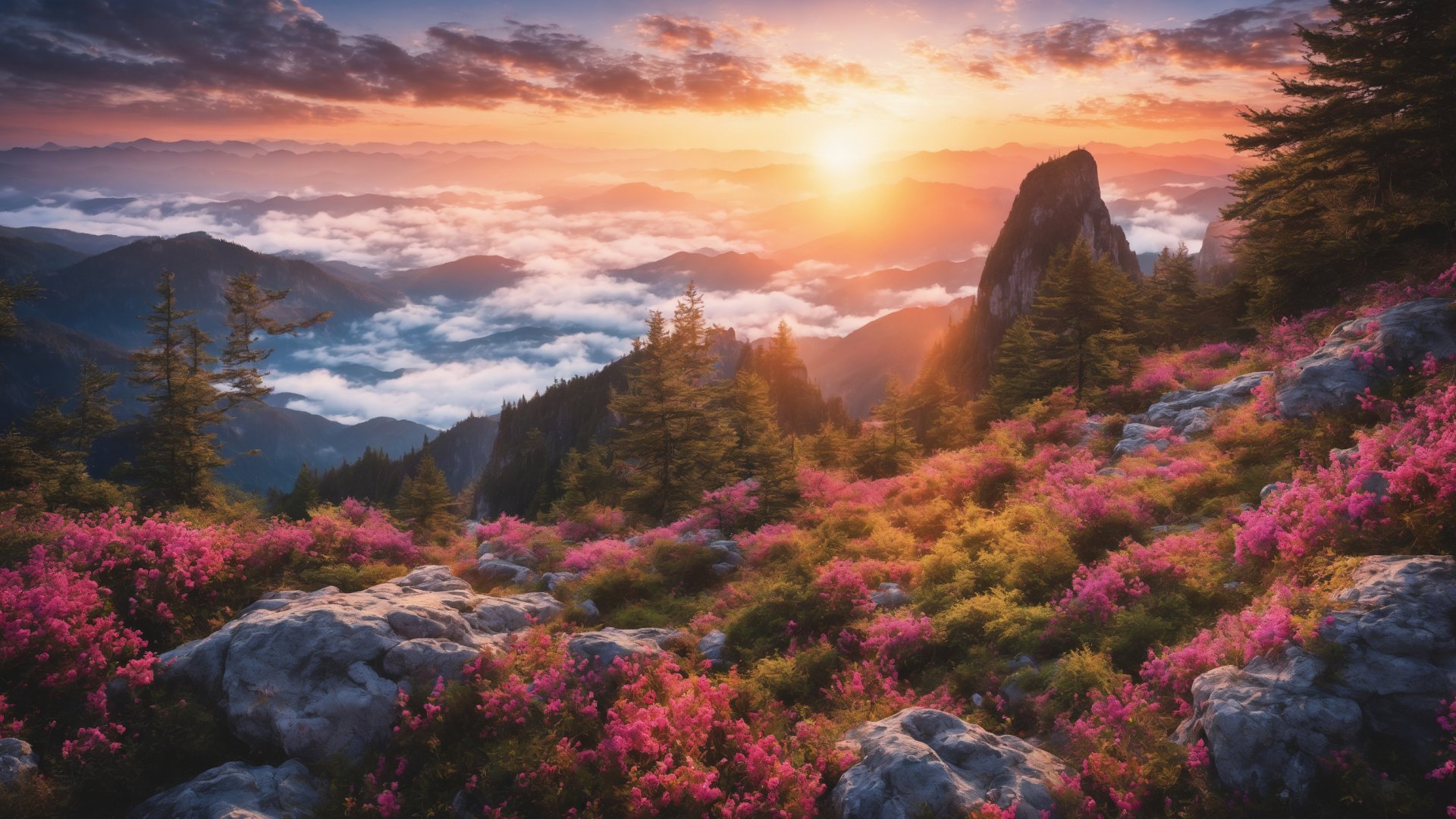 Обои: пейзаж, рассвет, горы - 1920x1080