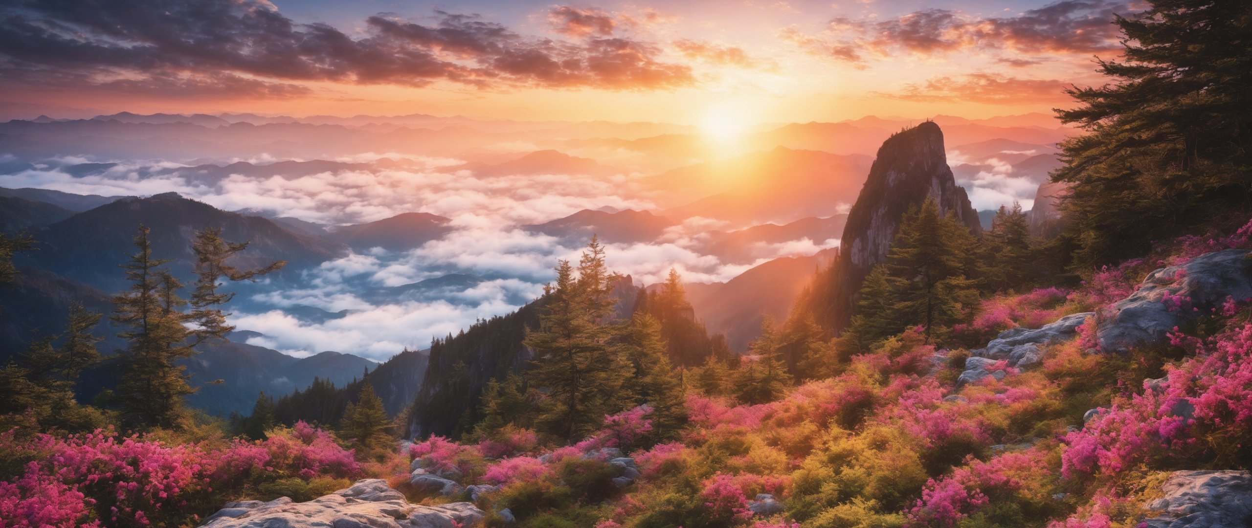 Обои: пейзаж, рассвет, горы - 2560x1080