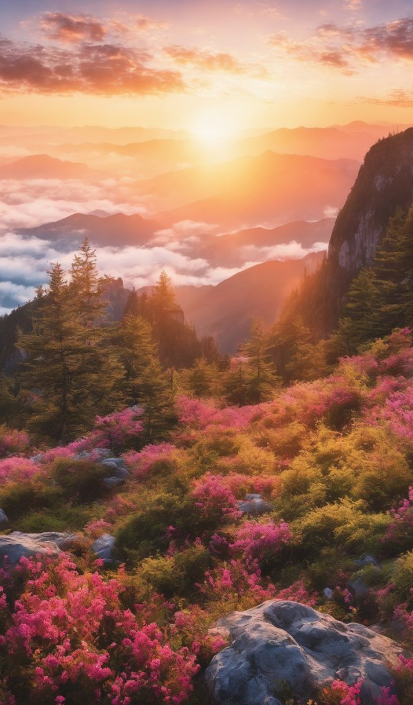 Обои: пейзаж, рассвет, горы - 600x1024