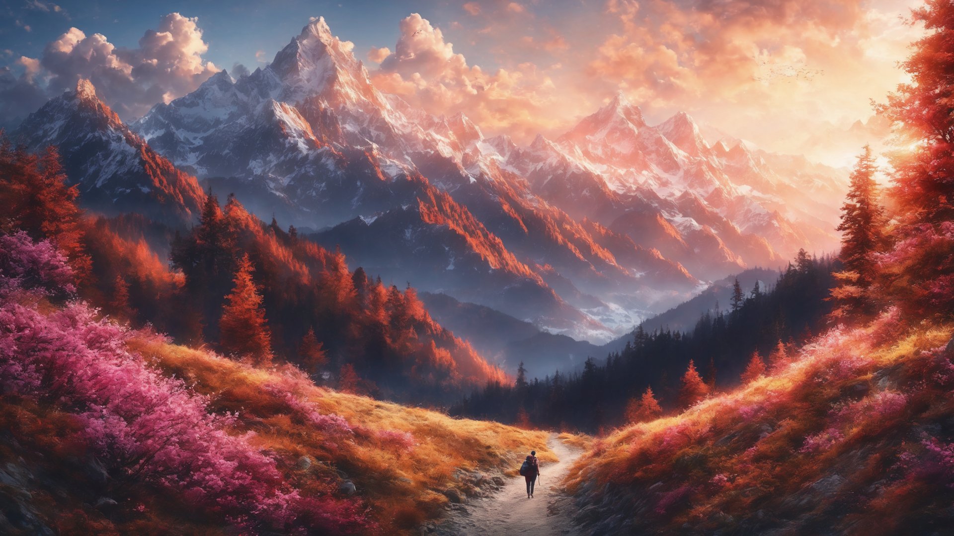 Обои: горная тропа, пейзаж, рассвет - 1920x1080