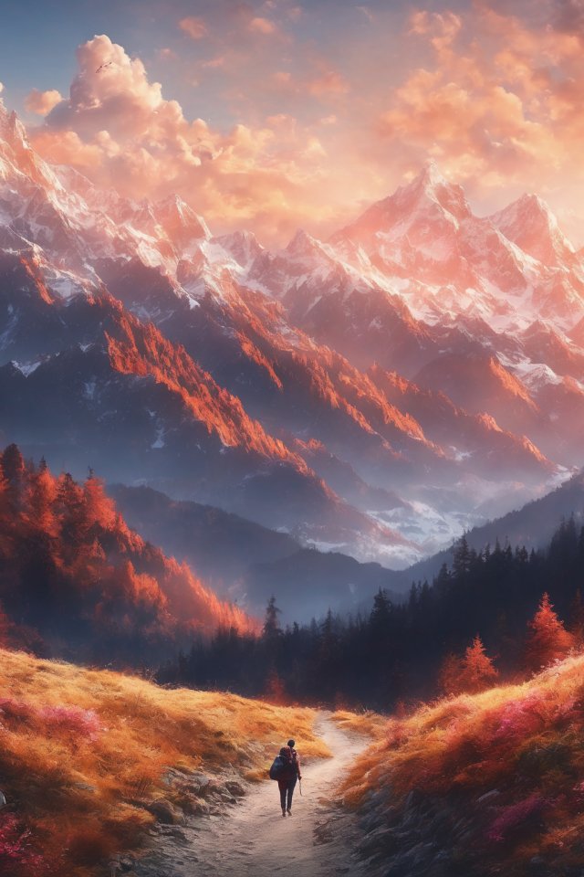 Обои: горная тропа, пейзаж, рассвет - 640x960
