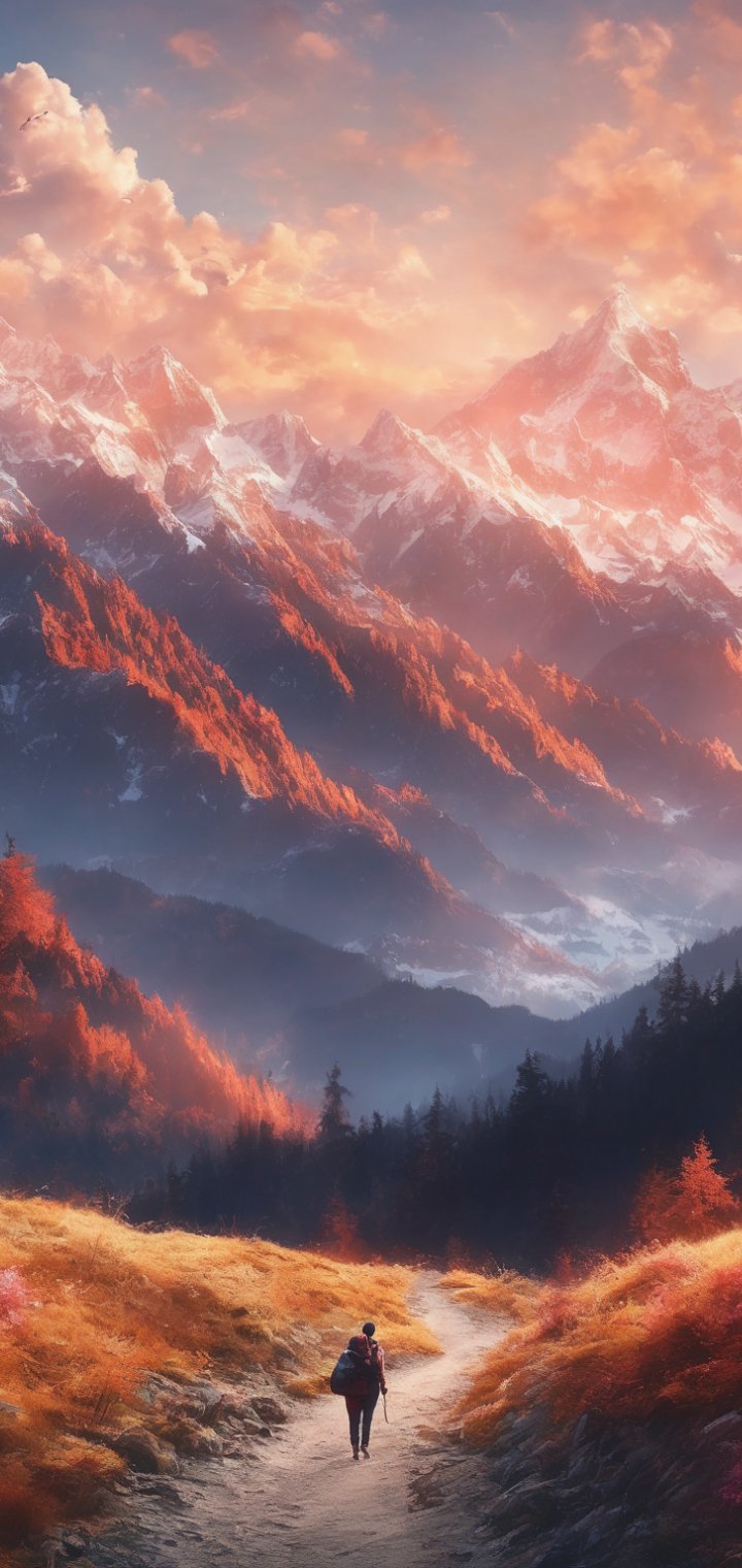 Обои: горная тропа, пейзаж, рассвет - 720x1520