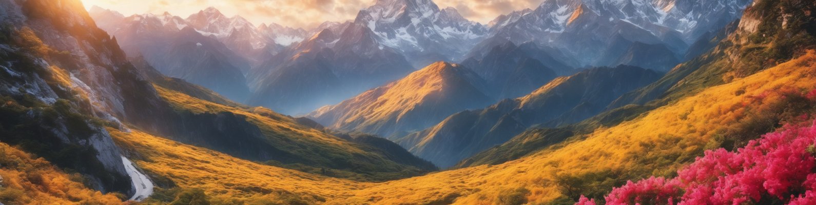 Обои: горы, пейзаж, рассвет - 1590x400