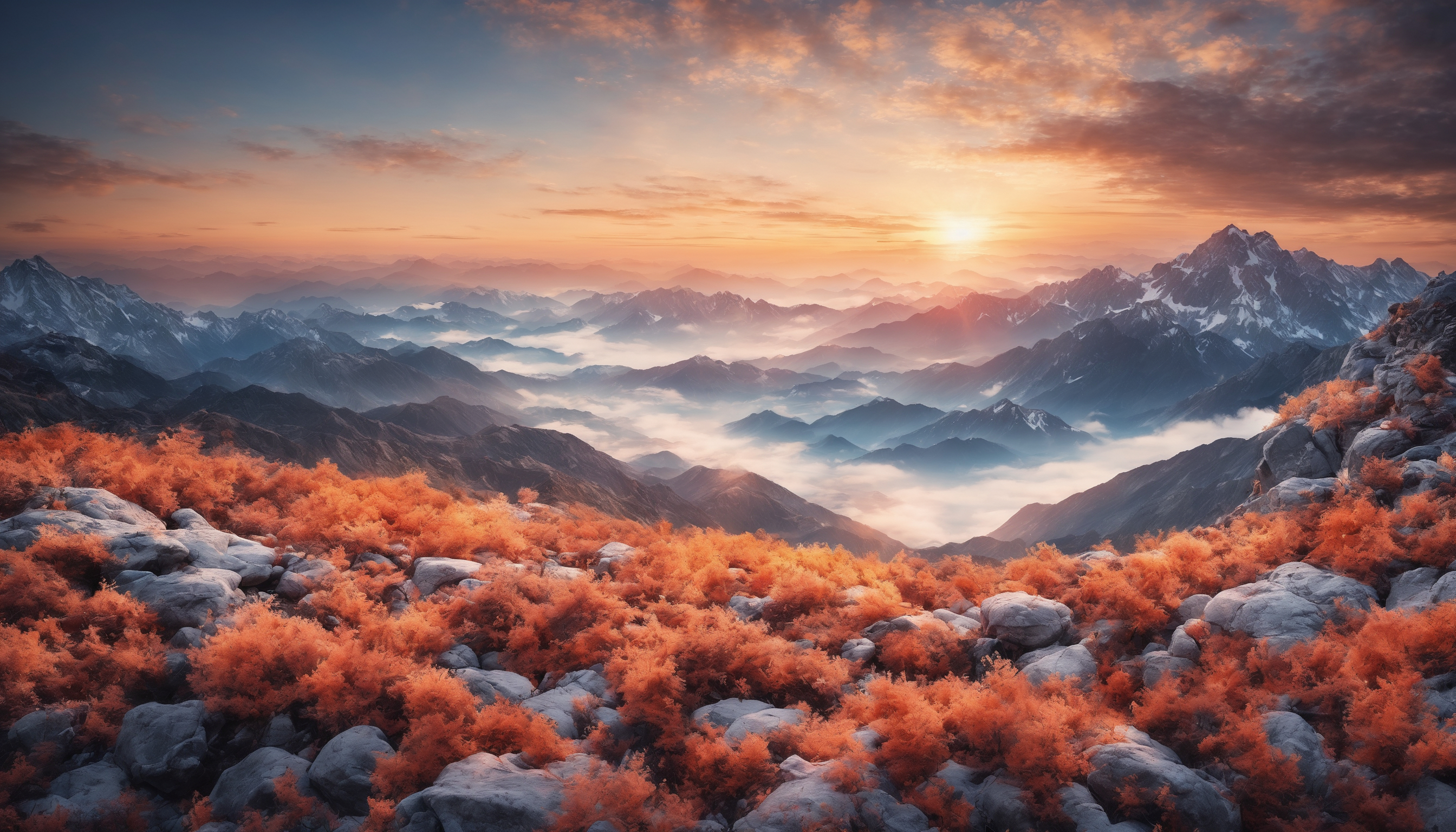 Обои: пейзаж, горы, рассвет - 2688x1536