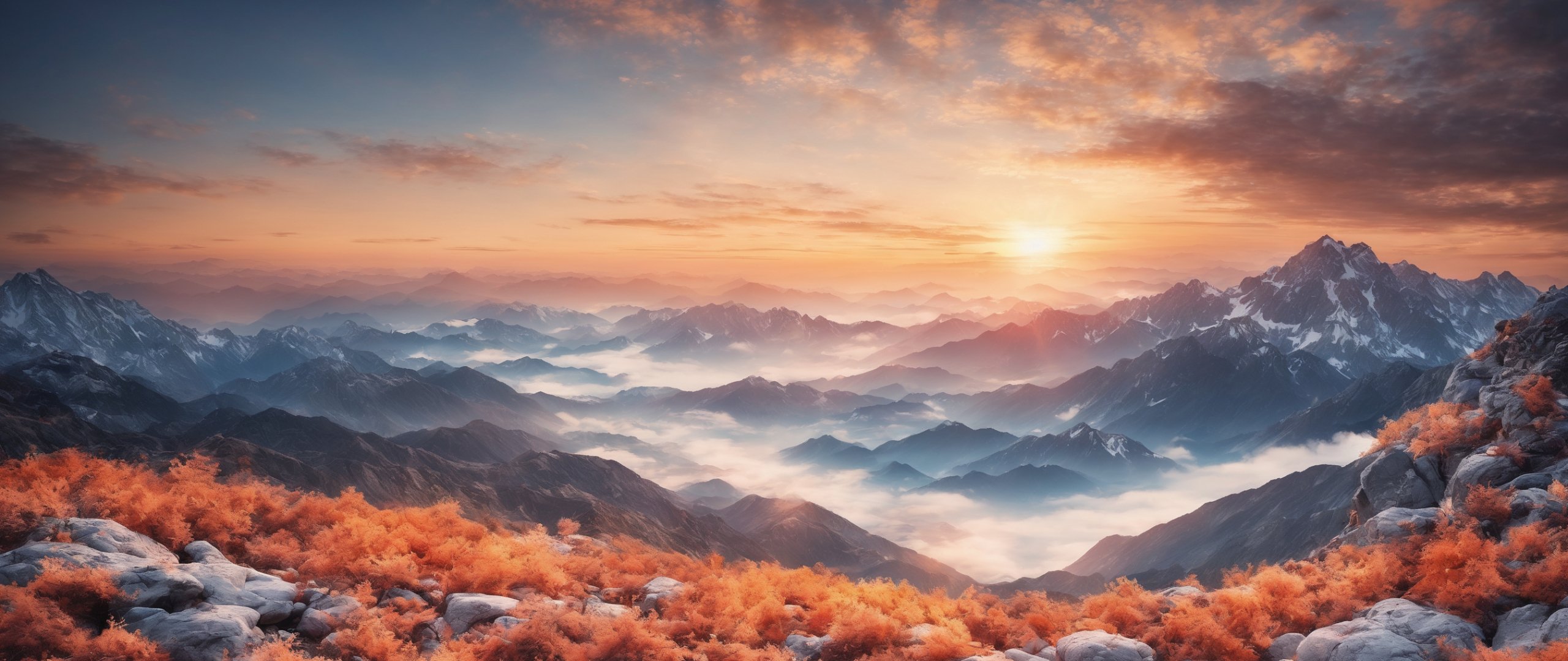 Обои: пейзаж, горы, рассвет - 2560x1080