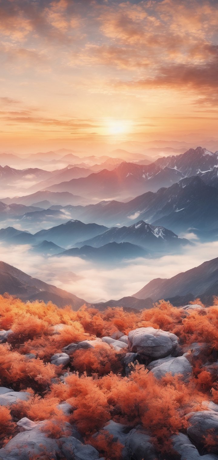 Обои: пейзаж, горы, рассвет - 720x1520