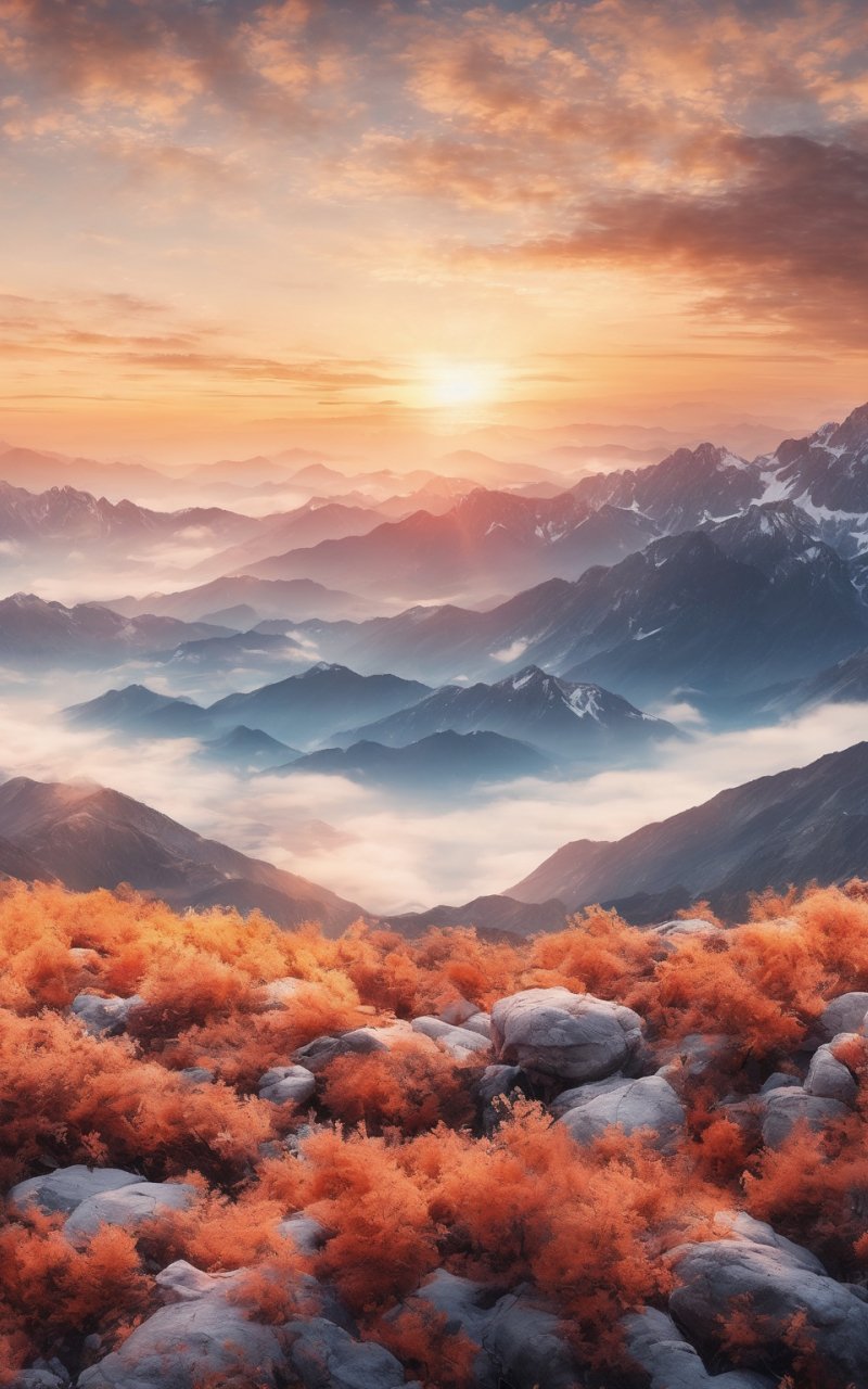 Обои: пейзаж, горы, рассвет - 800x1280