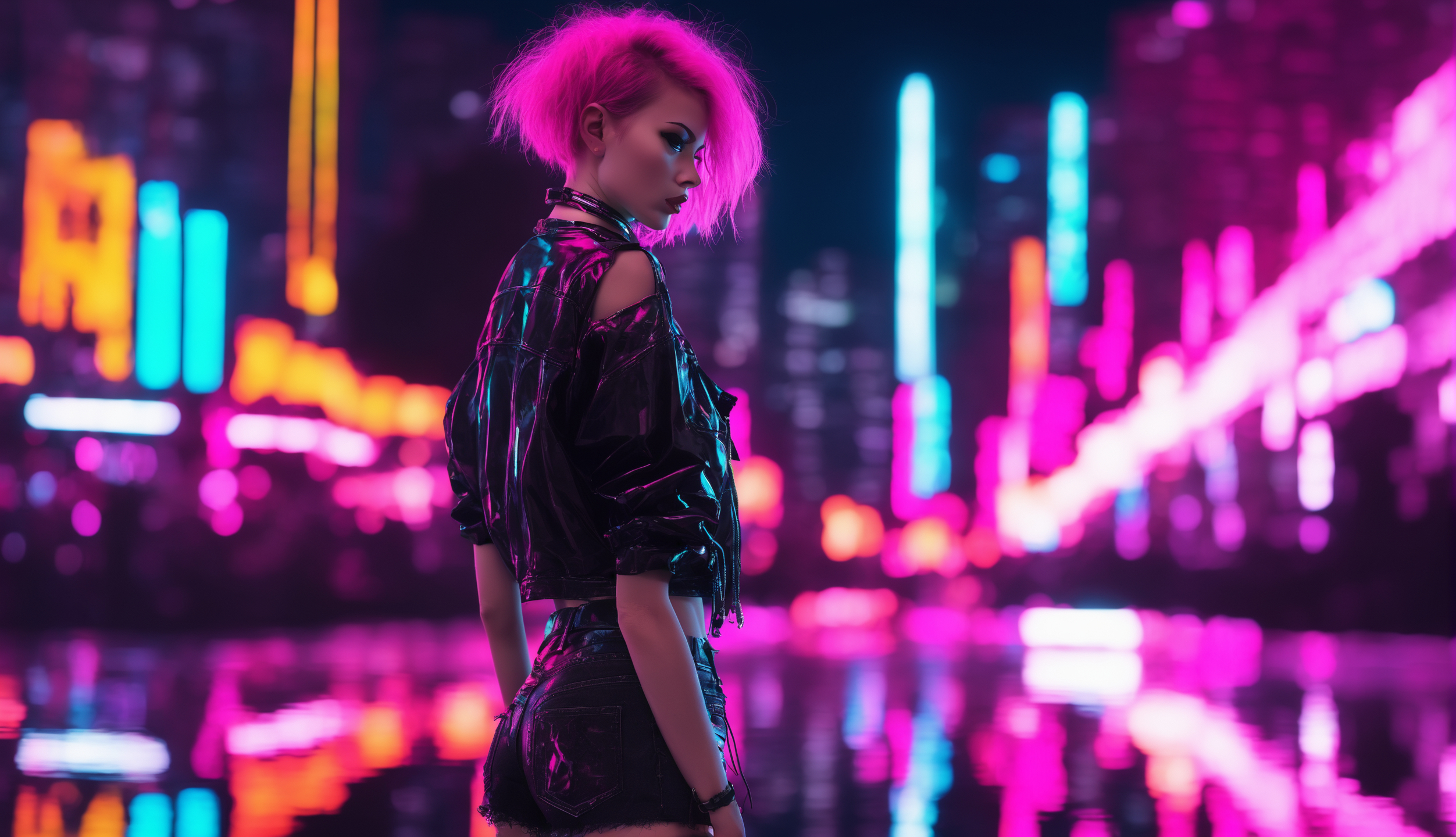 Обои: неон, девушка, киберпанк - 2504x1440
