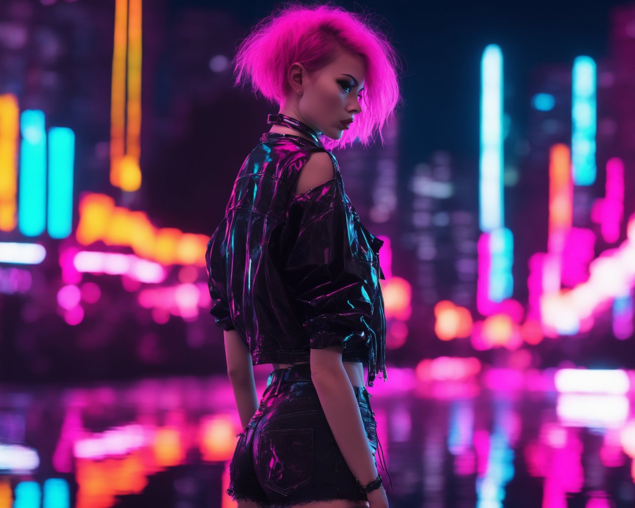 Обои: неон, девушка, киберпанк - 1280x1024