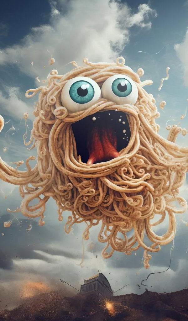 Обои: Летающий Макаронный Монстр - 600x1024