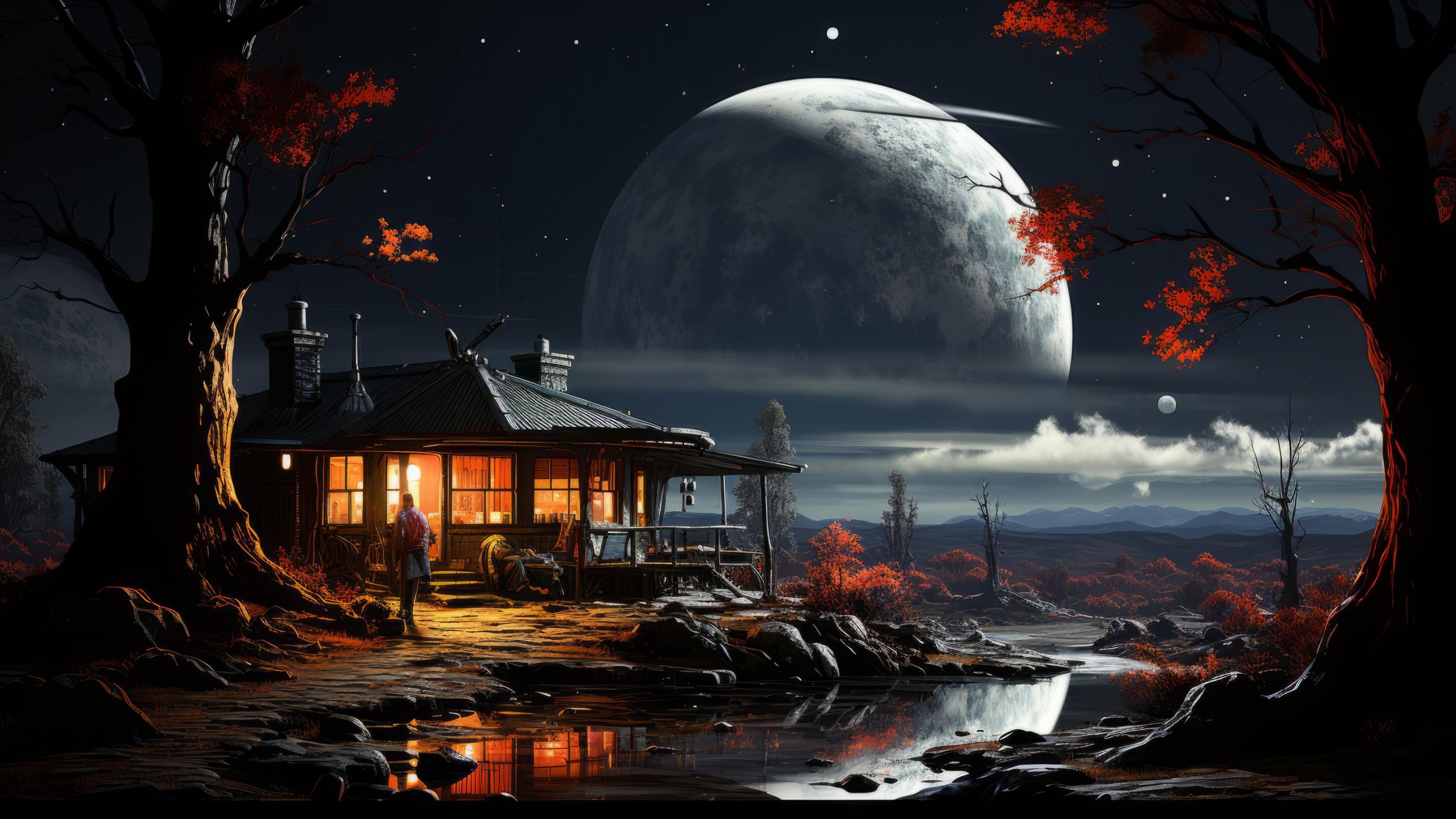 Обои: Sci-fi, планета, космоарт, ночь - 2560x1440