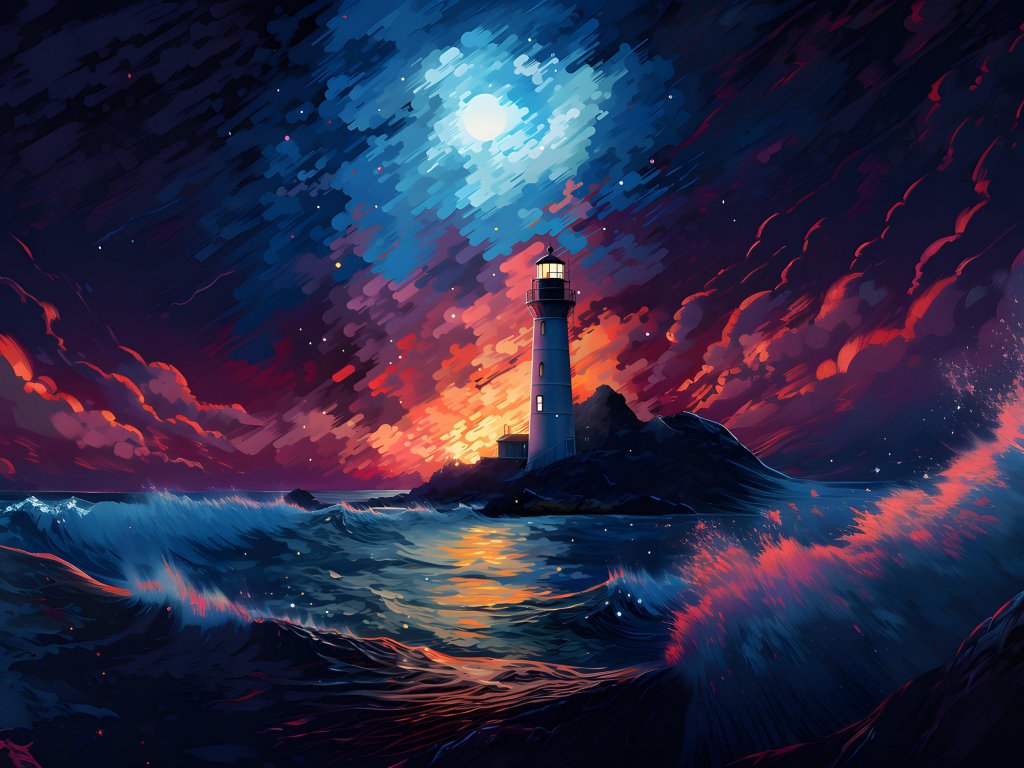 Обои: маяк, шторм, ночь, волны - 1024x768