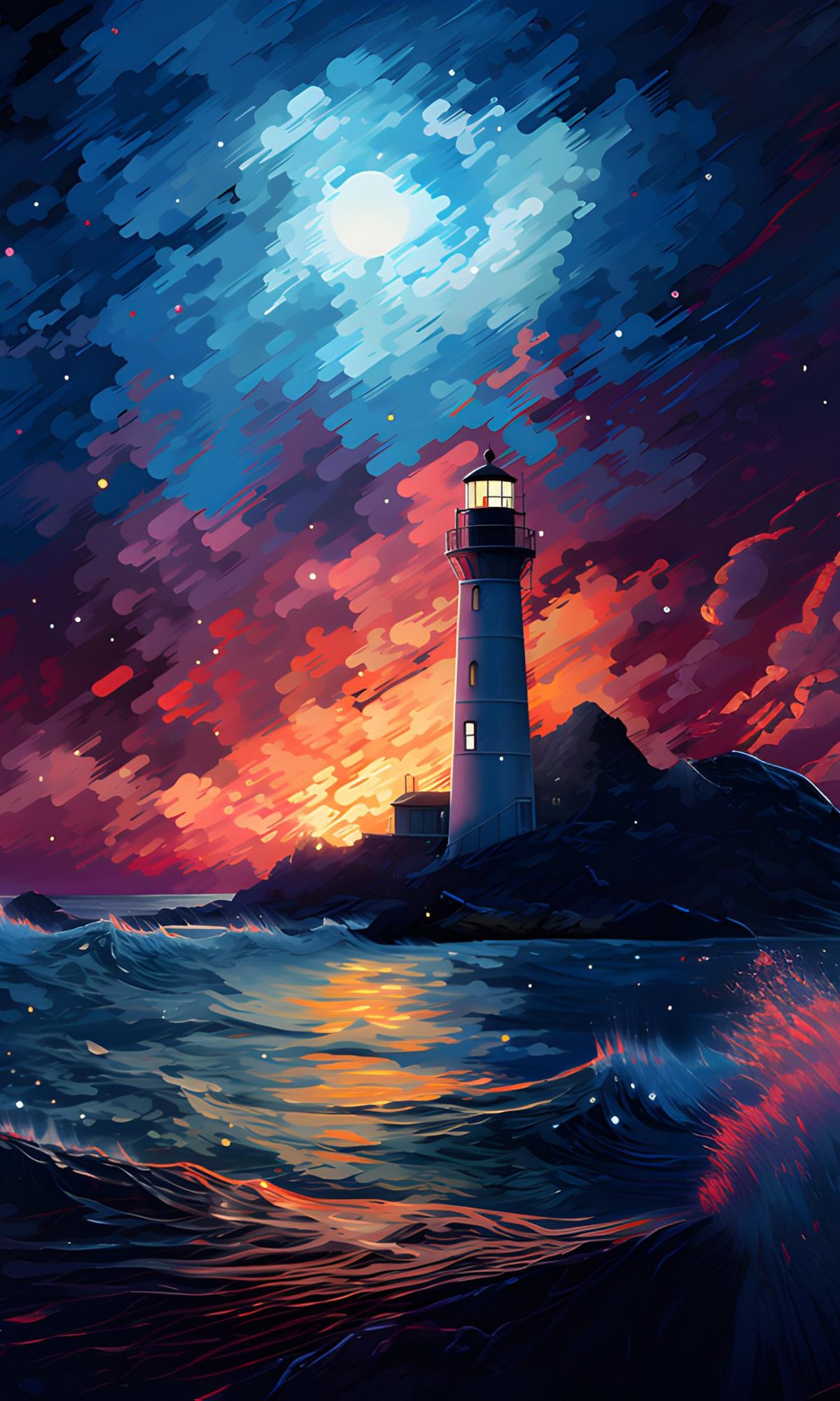Обои: маяк, шторм, ночь, волны - 1200x2000