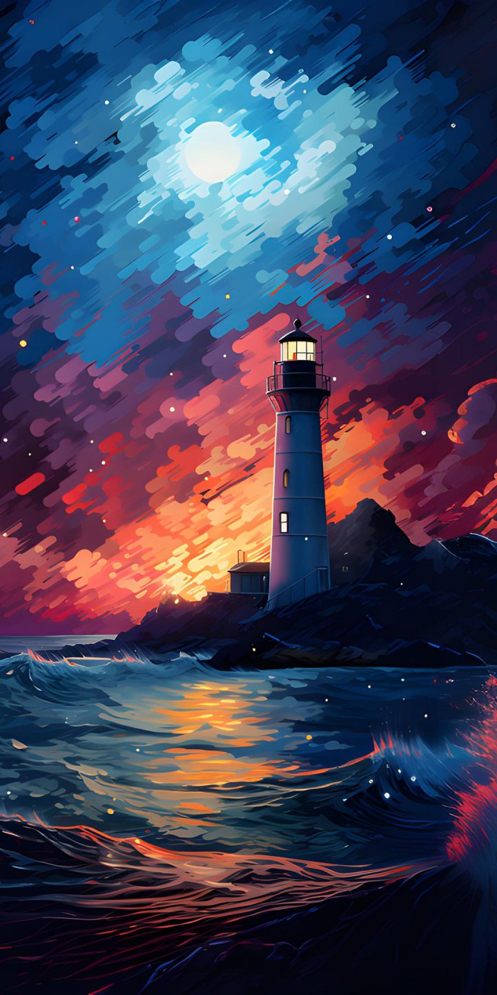 Обои: маяк, шторм, ночь, волны - 720x1440