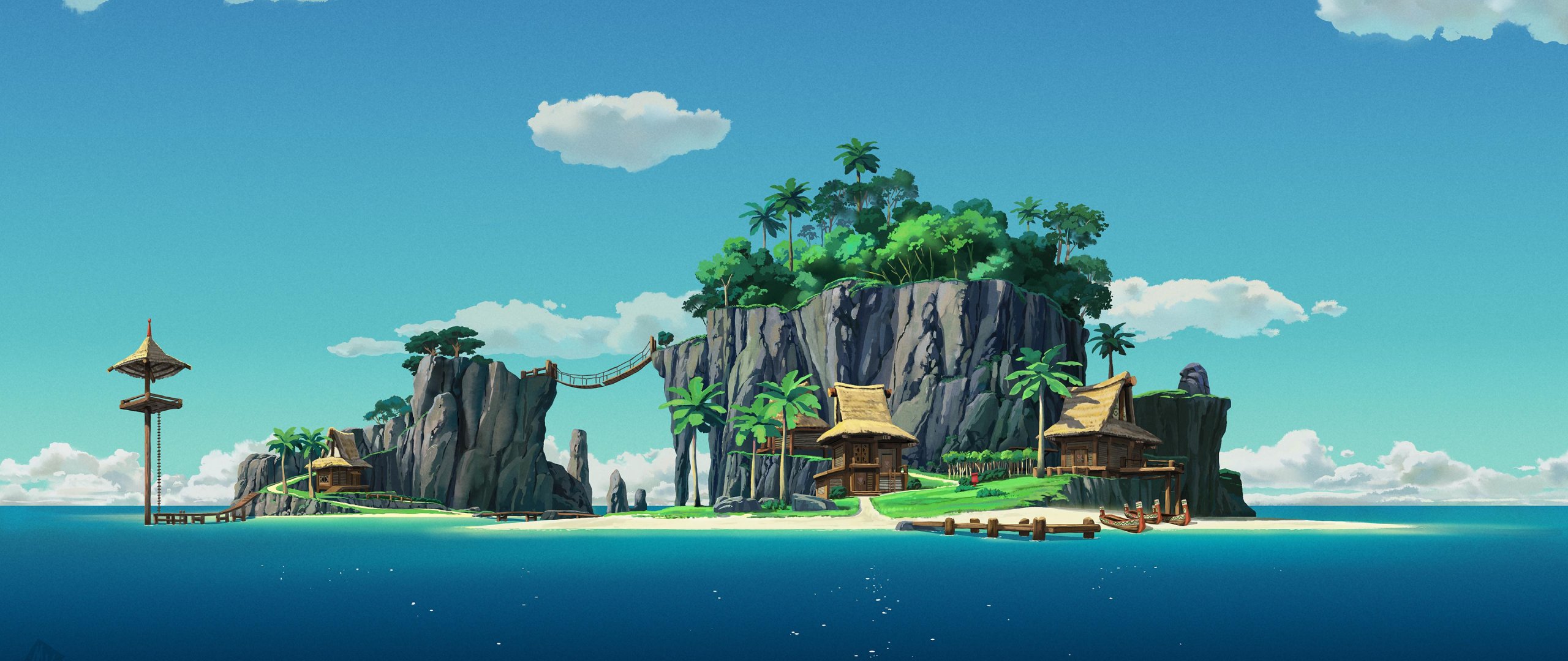 Обои: остров, океан, синий - 2560x1080
