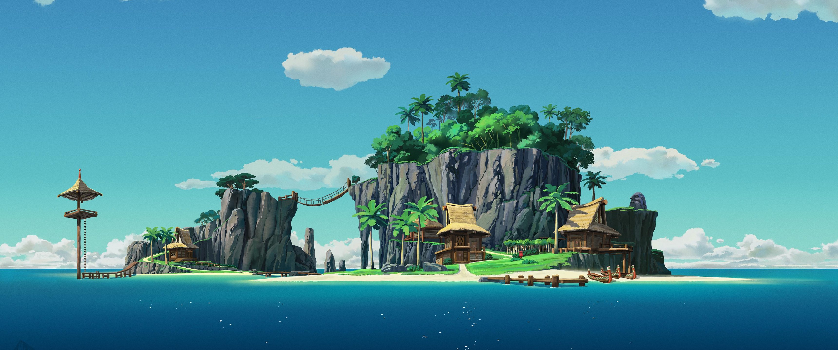 Обои: остров, океан, синий - 3440x1440