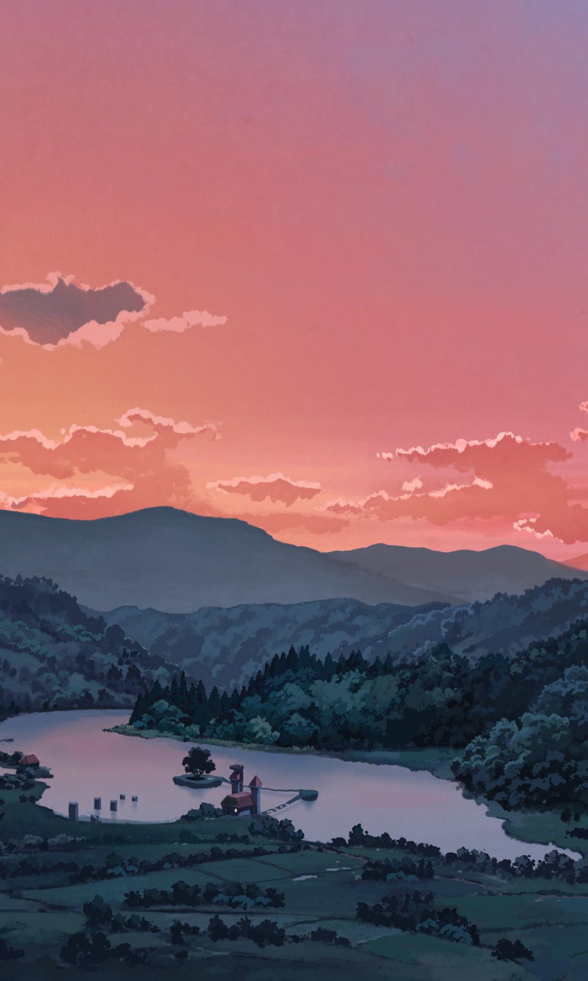 Обои: пейзаж, долина, рисунок - 1200x2000